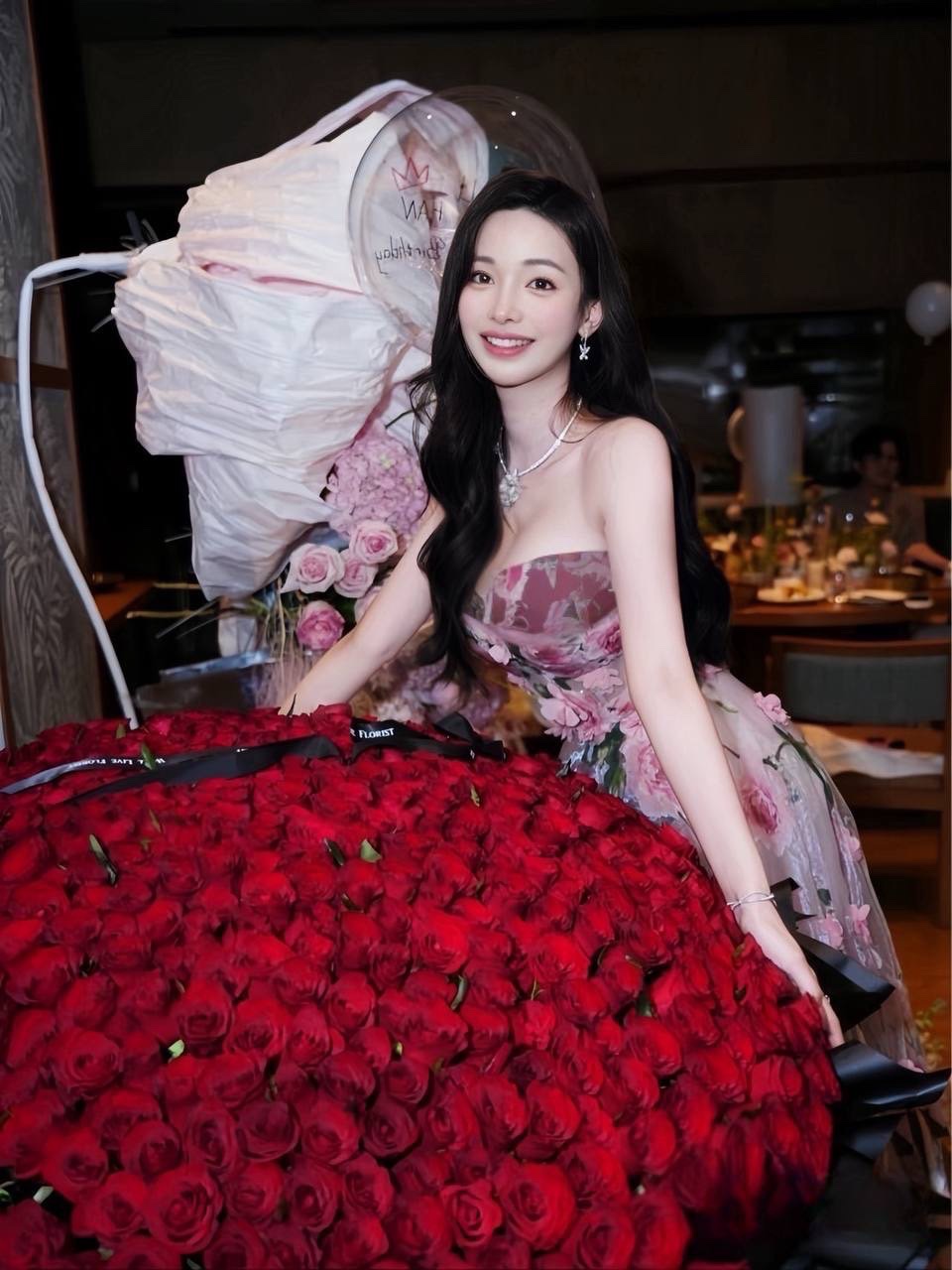 まるで花々に祝福されているかのように輝く上品で華やかな女性。