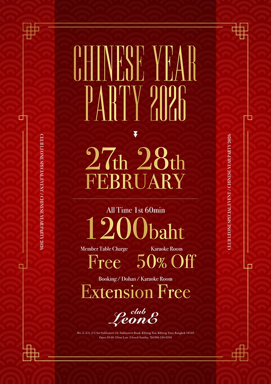 そんな「Club Leone / クラブレオーネ」にてCHINESE YEAR PARTY開催決定‼