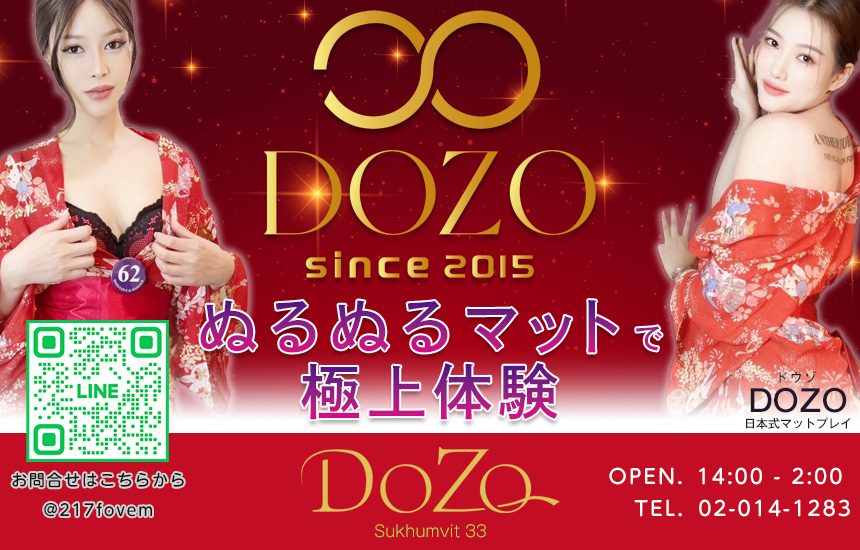 スクンビットソイ33の「DOZO / ドウゾ」がリニューアルオープン!お店の売りは日本のソープランド定番の”ぬるぬるマットプレイ”。ぬるぬるマットプレイで日頃の疲れをリフレッシュしてみはいかが?